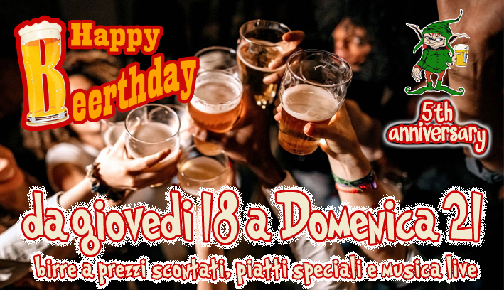 Giovedi 18 maggio il pub festeggia 5 anni (ben 14 anni dall’apertura del primo Bad Elf)