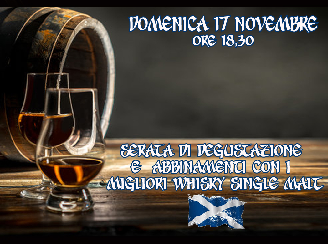 Masterclass di Degustazione guidata dedicata ai Whisky Single Malt, abbinati ad assaggi gastronomici.