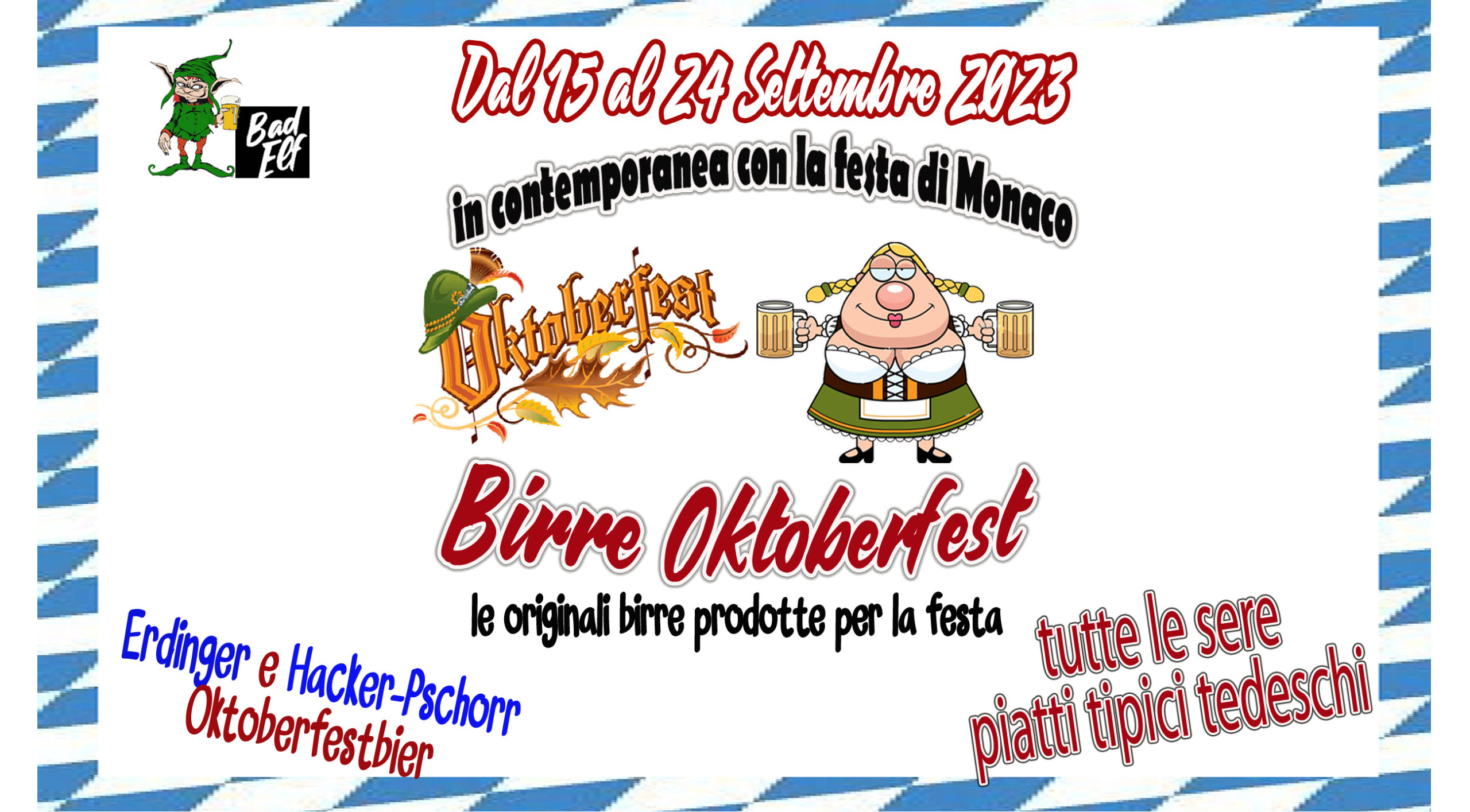 Puntuale come tutti gli anni, anche quest’anno Il Bad Elf pub festeggia l’Oktoberfest in contemporanea con la festa di Monaco.