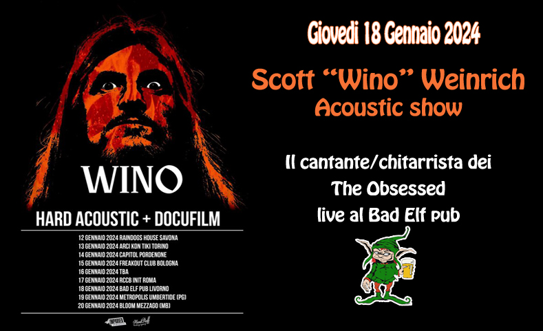 Hard acoustic set con chitarra e voce, con la proiezione del docufilm “Wino: The Documentary” uscito a luglio 2023 che racconta la storia dello storico artista attraverso interviste, live e reperti.